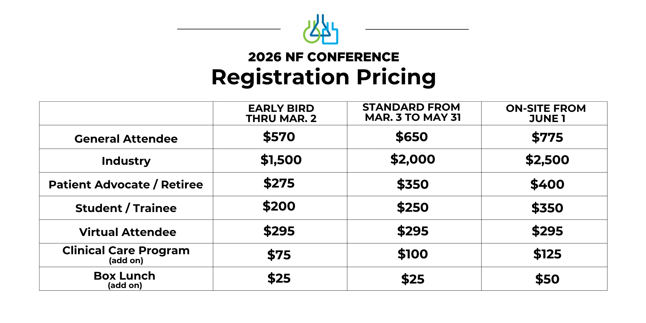 2026 NF Conference Registration fees are as follows: